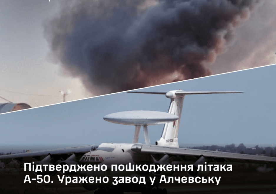 Генштаб підтвердив пошкодження літака А-50 на авіаремонтному заводі в рф, також уражено комбінат в Алчевську