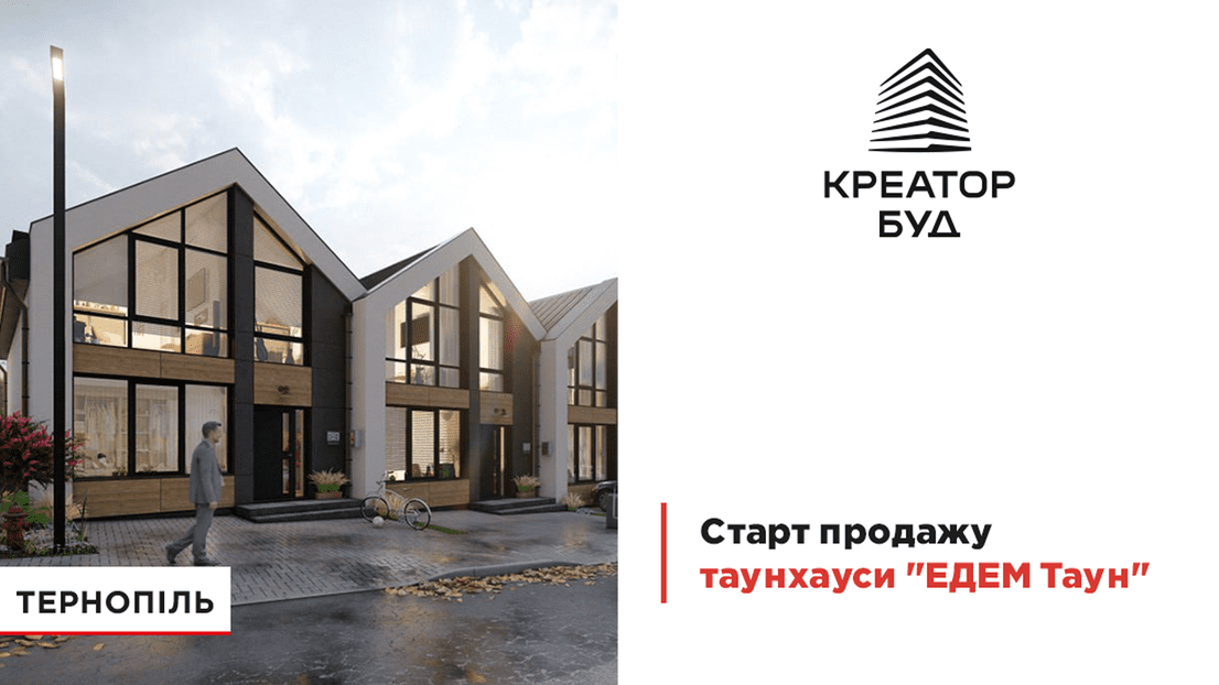 Будівельна компанія “Креатор-Буд”, що реалізує проєкти у столиці та західних регіонах України, оголосила про старт продажу та початок зведення нового проєкту таунхаусів “EDEM Таун” у Тернополі, що будується на вулиці Тролейбусна, 14.