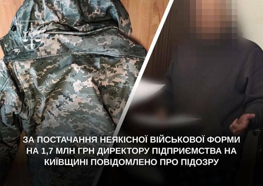 На Білоцерківщині за постачання неякісної військової форми на 1,7 млн грн директору підприємства повідомлено про підозру