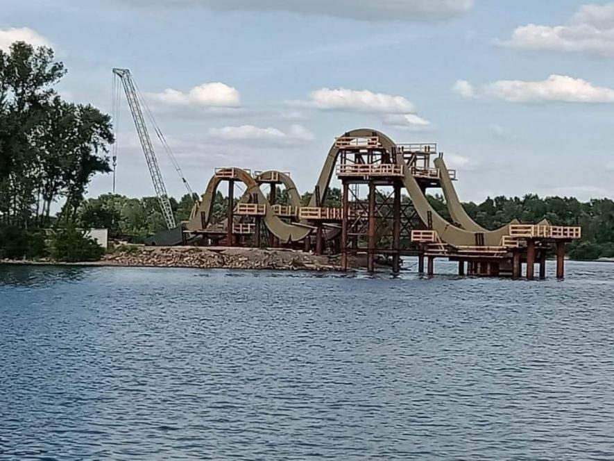 В Оболонському районі Києва продовжується будівництво нового пішохідного мосту, який з’єднає острів Оболонський та парк «Наталка». Наразі фахівці вже почали встановлювати конструкції у вигляді хвиль.