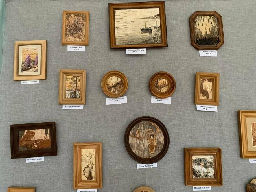 Про свій творчий шлях у мистецтві створення картин із берести поділилася Олена Вовченко, чиї роботи також представлені на цій виставці.