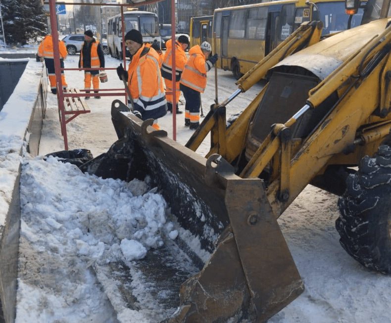 Крім того, 456 працівників комунальної корпорації у складі 70 бригад прибирають сніг та обробляють протиожеледними засобами зупинки, вузькі тротуари, сходи, підходи до наземних і підземних переходів та інші пішохідні зони, де не може працювати малогабаритна снігоприбиральна техніка.